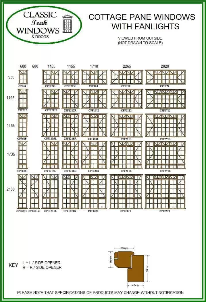 On first appearance the combination of cottage pane opening sashes with conventional clear glass fixed panes found in our standard side hung windows might seem somewhat at odds.